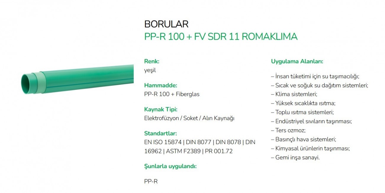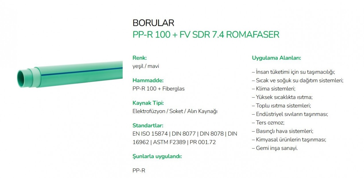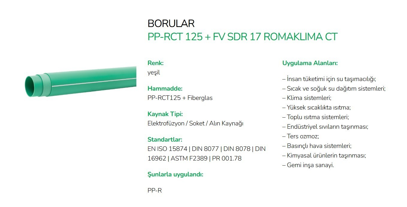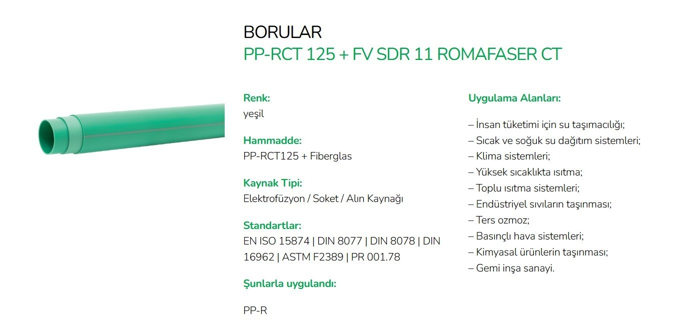 Bu özellikler sayesinde özellikle büyük çaplı ve profesyonel projelerde tercih edilmektedir. PP-RCT borular geniş kullanım alanına sahiptir: