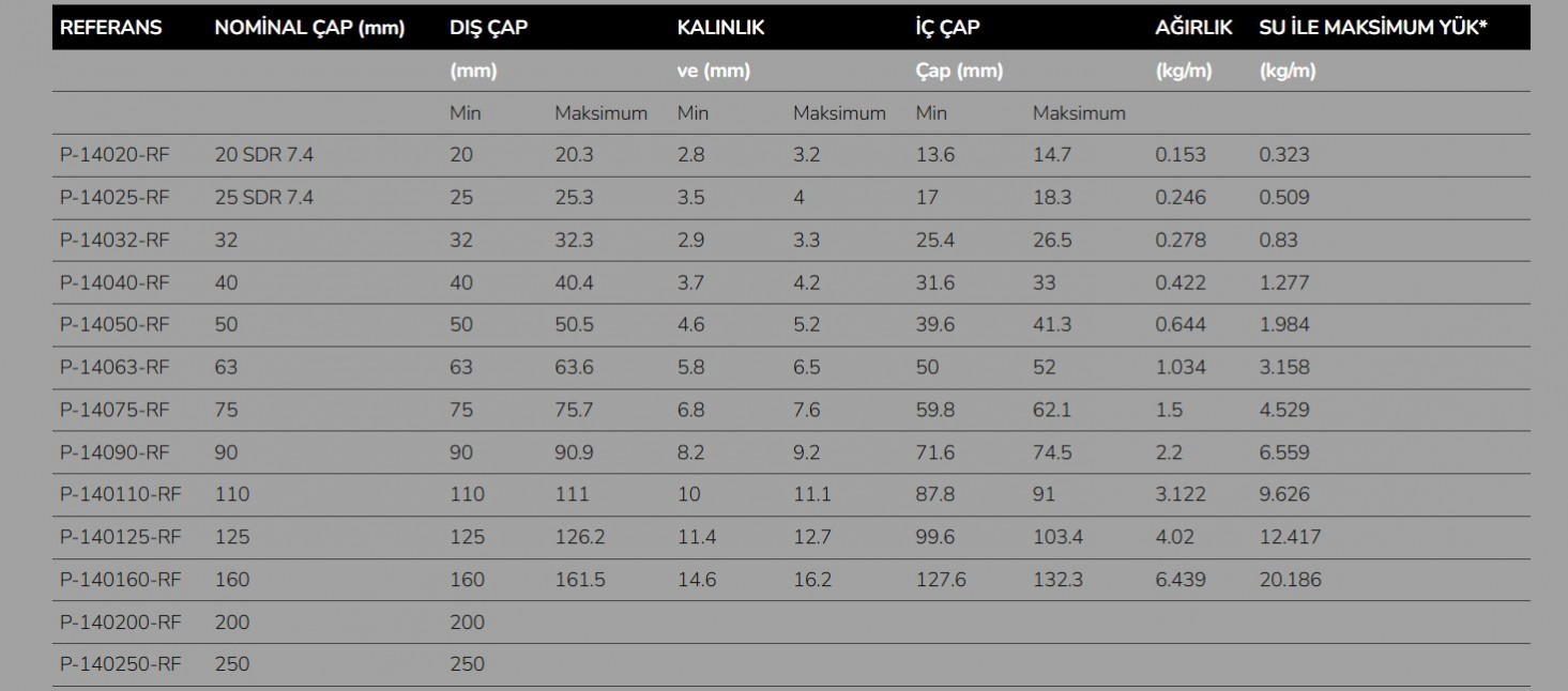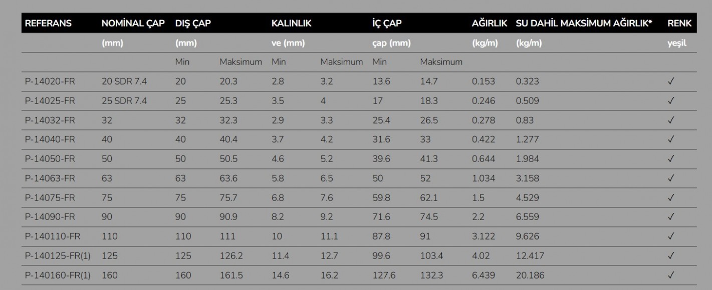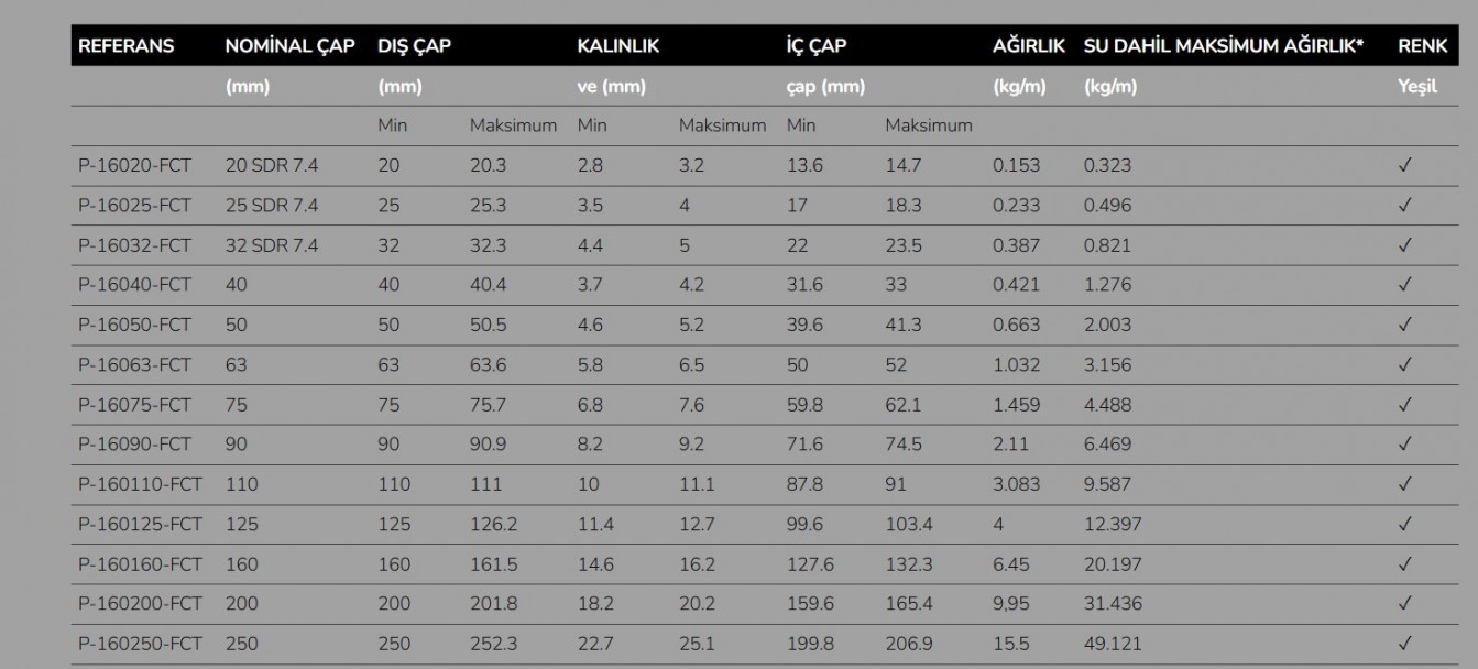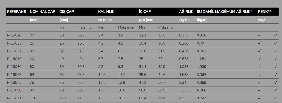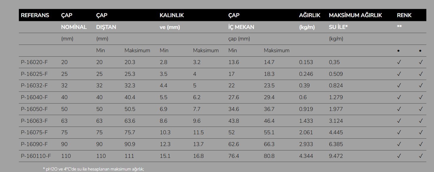 ✔ İç yüzey pürüzsüzlüğü sayesinde düşük sürtünme